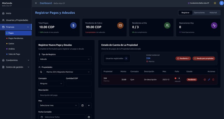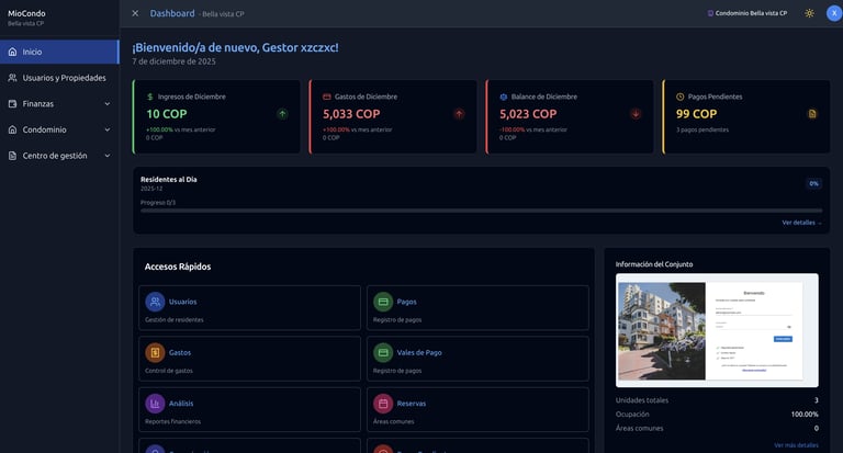 Miocondo es un software de administración de condominios rápido, seguro y fácil de usar, diseñado para simplificar la gestión diaria tanto para administradores como para residentes.